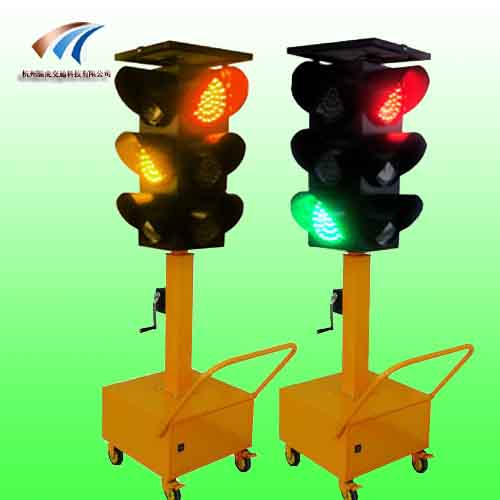 太阳能移动信号灯无需电源,将太阳能转换成电能,人工设置自动控制发光体闪烁模式,使LED自动发光,并可应急市电充电。